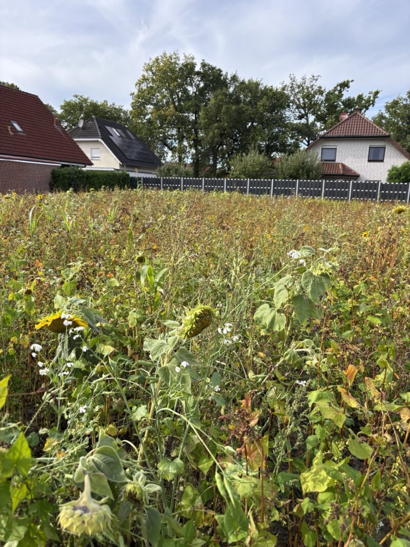 In diesem Jahr haben wir zunächst eine sogenannte Zwischenfrucht ausgesät. Diese dient dazu, den Boden mit wichtigen Nährstoffen anzureichern und seine Struktur zu verbessern. So schaffen wir die besten Voraussetzungen dafür, im kommenden Jahr eine bunte, standortgerechte Blumenmischung mit heimischen Arten auszusäen.