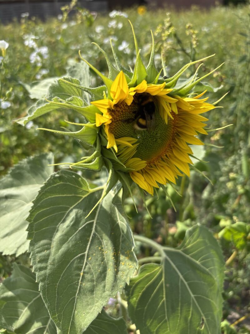 Blühflächen wie diese sind besonders wertvoll, denn sie bieten Nahrung und Unterschlupf für zahlreiche Insektenarten. Leider geht der Bestand vieler bestäubender Insekten – darunter Bienen, Hummeln und Schmetterlinge – seit Jahren stark zurück. Dieses Insektensterben hat weitreichende Folgen für unser gesamtes Ökosystem, denn ohne Bestäuber geraten auch viele Pflanzenarten und damit ganze Nahrungsketten aus dem Gleichgewicht.